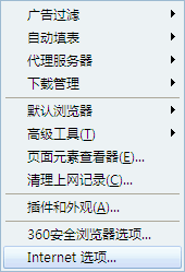 2、在”工具“菜单里选择”Internet选项。