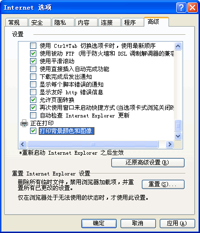 网页打印时显示背景的设置方法